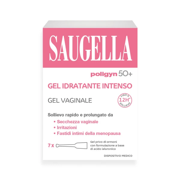 Saugella Poligyn 50+ Gel Idratante Intenso è un lubrificante idratante vaginale senza ormoni, formulato per rispettare l'equilibrio naturale del corpo. La secchezza vaginale è un disturbo che può interessare molte donne in diverse fasi della vita, in particolare in presenza di cambiamenti ormonali (come la menopausa), in periodi di stanchezza, stress o durante l’assunzione di alcuni farmaci. Saugella Poligyn 50+ Gel Idratante Intenso contiene Acido Ialuronico (AI), un componente essenziale del fluido vaginale, che contribuisce ad integrare i livelli naturali di idratazione. Saugella Poligyn 50+ Gel Idratante Intenso è pensato per restituirti una sensazione di sollievo e comfort. È incolore, inodore, non appiccica ed è facile da usare.